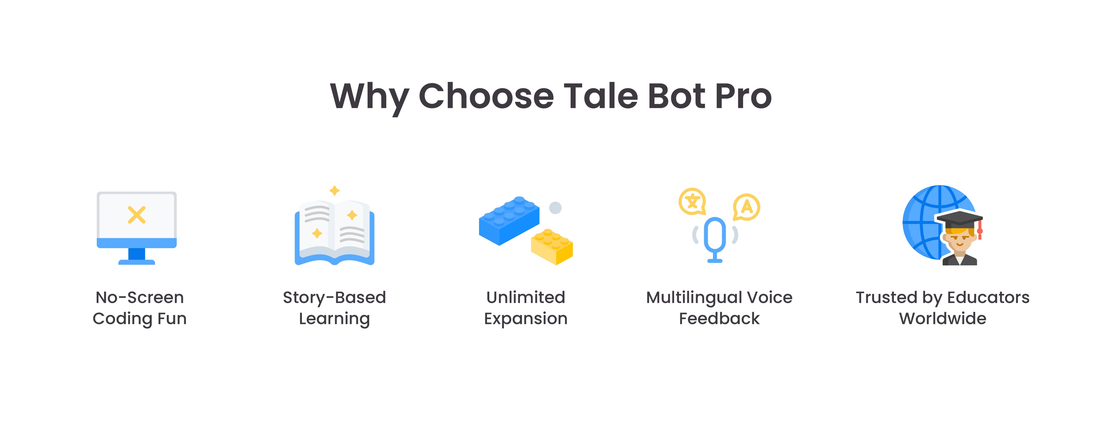Tale-Bot Pro verwandelt das Programmieren in ein fesselndes Abenteuer und ermöglicht Kindern, die Grundlagen des Programmierens zu erlernen und dabei Spaß zu haben.